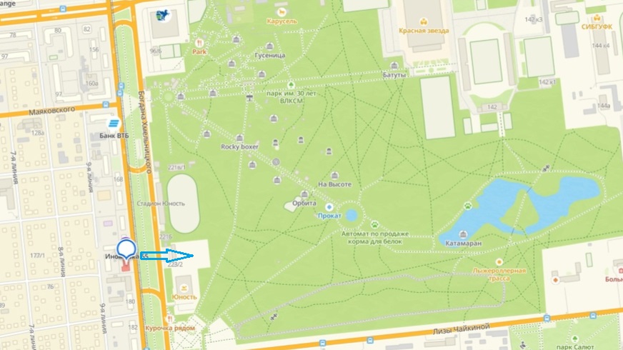 Омские власти планируют отдать часть парка имени 30-летия ВЛКСМ между бассейном и футбольным полем под общепит. По данным кадастровой карты, пока эта земля предназначена для строительства спортивно-развлекательного комплекса, но это собираются изменить.