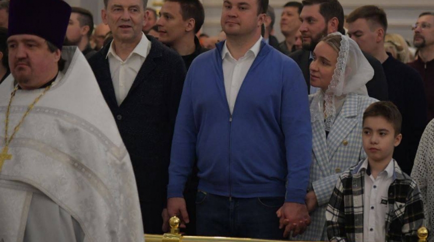 Губернатор на пасхальной службе / Фото: личный телеграм-канал Виталия Хоценко Губернатор Омской области Виталий Хоценко в воскресенье, 5 мая 2024 года,