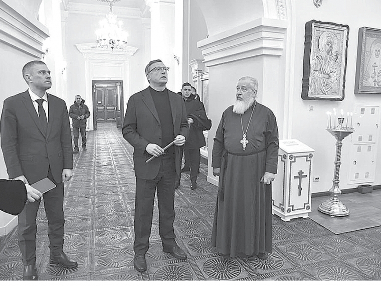 – Иконостасы находились за колонной, мы решили их вынести в наружную часть, это позволило увеличить алтарную часть, – пояснял губернатору настоятель храма протоиерей Михаил.
