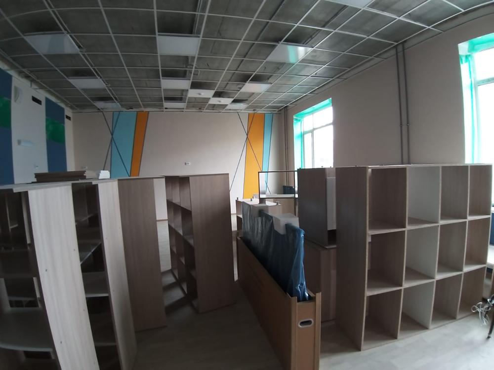 Уже смонтировано оборудование для кабинетов информатики, завезена учебная мебель и шкафы для методических материалов.
