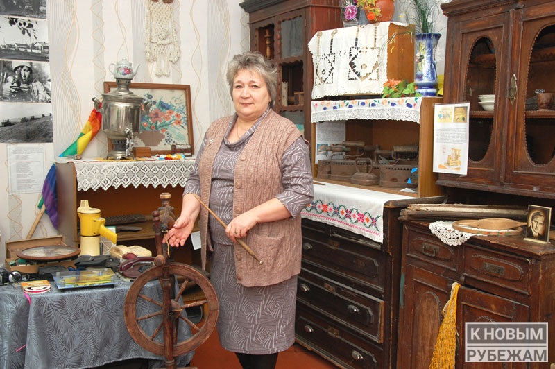 В музейной комнате много вещей, характеризующих домашний быт той эпохи: великолепно сохранившаяся мебель, кухонная утварь, посуда, угольные утюги, самовары, ухваты, рушники, салфетки и многое другое. Например, на деревянной самопряхе пряла шерсть еще прабабушка С.В. Пантусовой — Степанида Астафьевна Хохлова. «Я тоже на ней пряла. Детям показывала, как это делается», — признается С.В. Пунтусова.