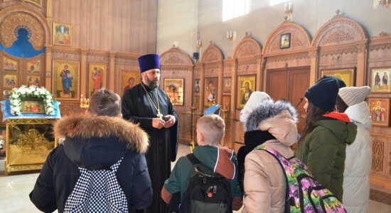 15 февраля 2023 года в праздник Сретения Господня учащиеся 5 и 8 классов города Омска средней общеобразовательной школы № 104 побывали в храме в честь иконы Божией Матери «Скоропослушница» города Омска. Экскурсию для ребят провёл отец Алексий Айжинас. Батюшка рассказал экскурсантам об истории храма, его внутреннем устройстве и убранстве.