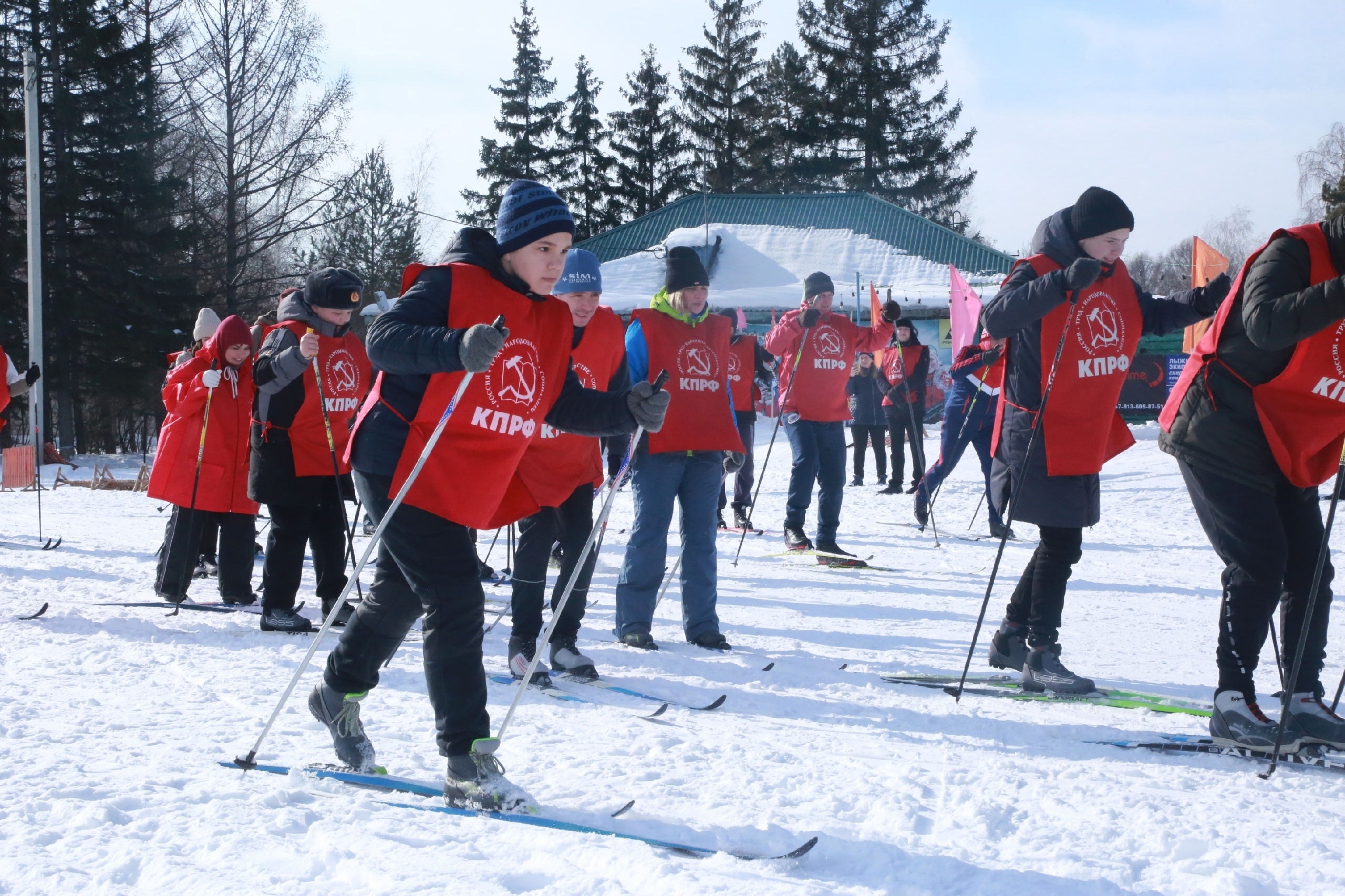 Перед стартом перед спортсменами в красном выступил второй секретарь Омского обкома КПРФ (заодно - один из судей) Иван Федин. Поздравил товарищей с праздником, сказал несколько слов о ситуации в стране и мире. А секретарь Омского обкома КПРФ Константин Ткачев, давая интервью журналистами телеканала «Обком ТВ», подчеркнул, что его радует большое количество молодежи, откликнувшейся на идею «Красной лыжни».