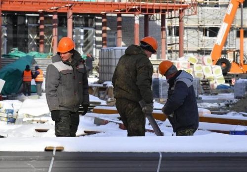 На объекте работают 214 человек. Отставания от графика нет, строители трудятся в две смены.