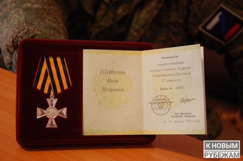 Саргатчанин Иван Игоревич Шабунин награжден знаком отличия ордена Святого Георгия — Георгиевским Крестом IV степени за доблесть и отвагу, проявленные в боевых действиях в зоне специальной военной операции на Украине.