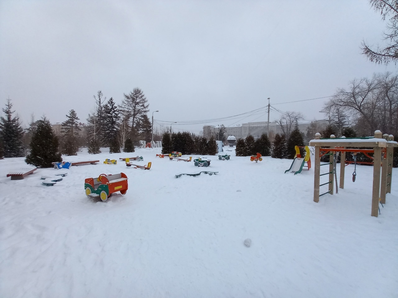 Детские площадки тем временем непривычно опустели для выходного дня еще до метели.