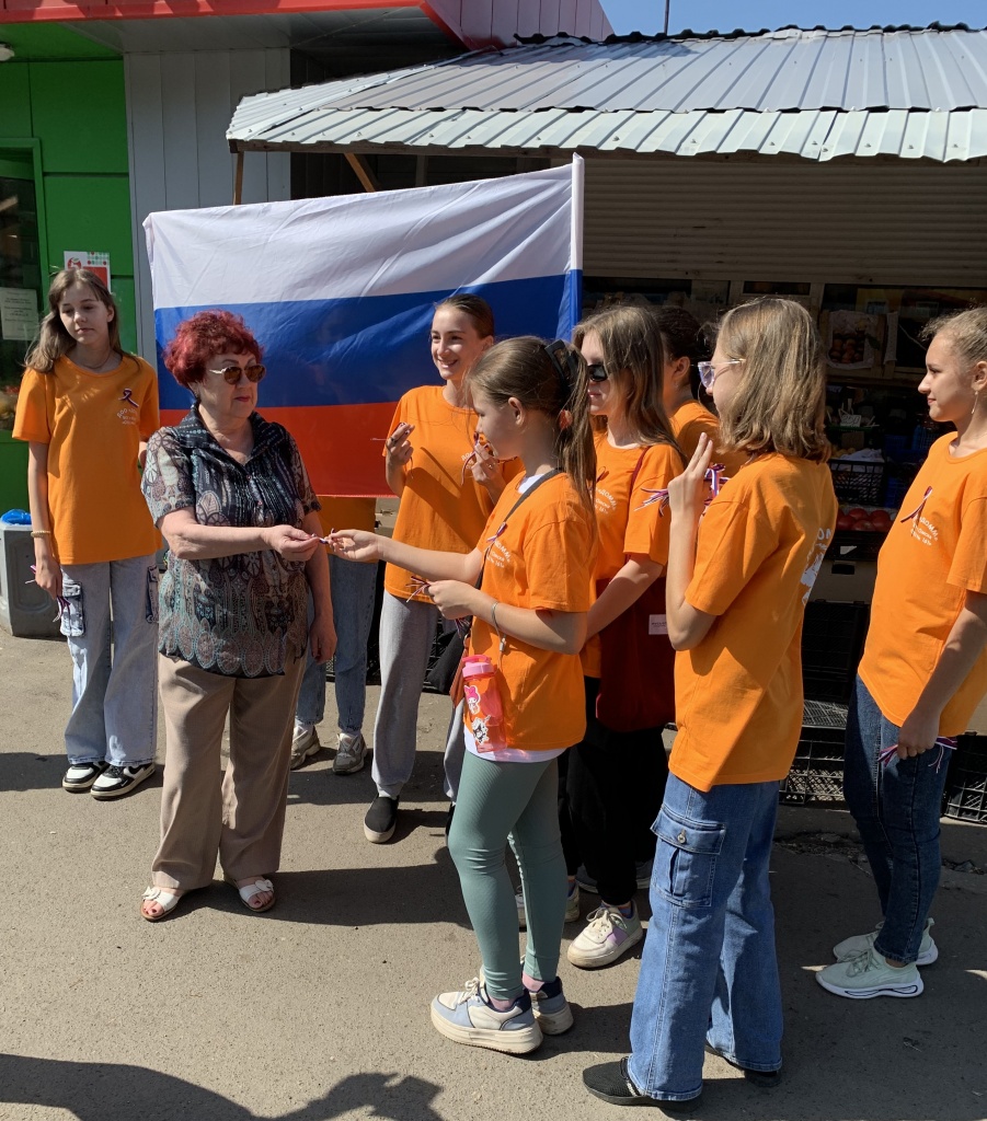 В центре микрорайона ребята поздравляли жителей микрорайона с праздником и вручали ленточки с расцветкой государственного флага. Целью акции, как рассказал председатель комитета ТОС «Входной» Хмельницкий Алексей, в первую очередь, было патриотическое воспитание молодежи и конечно уважительное отношение к государственной символике страны и в целом к нашему государству.