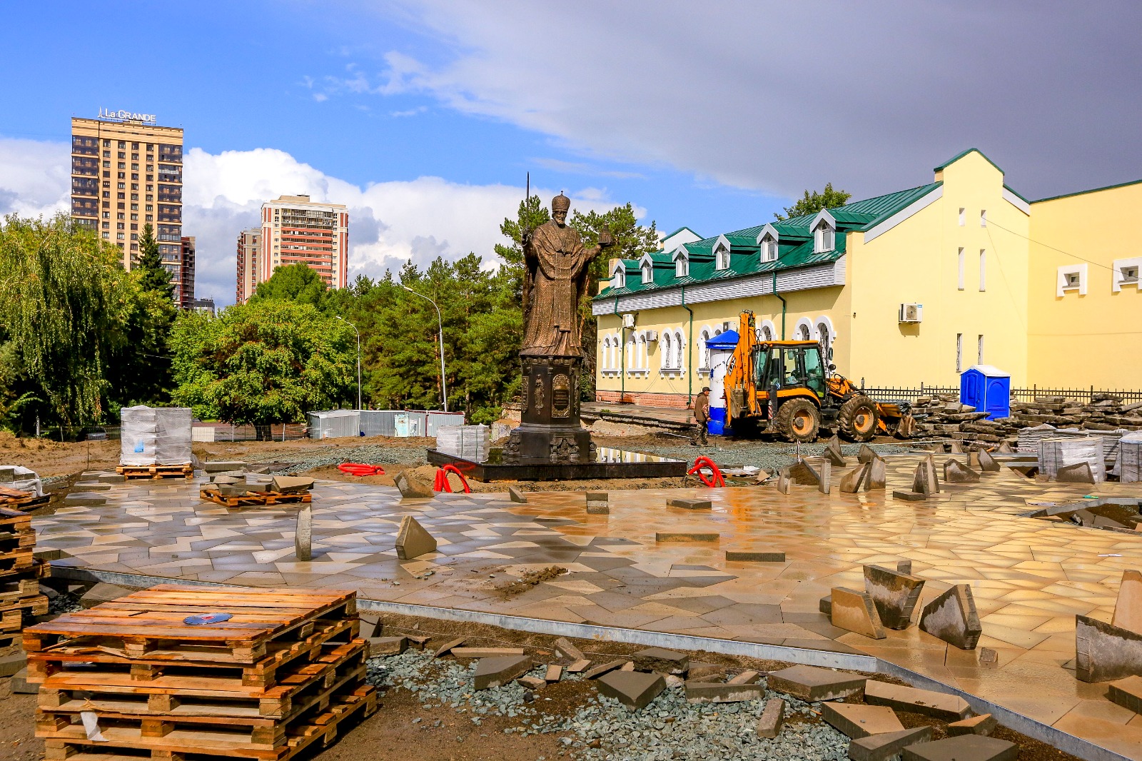 Площадь перед цирком постепенно приобретает законченные очертания: выложена дорожка к памятнику Николаю Чудотворцу,