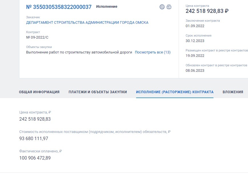 Как выяснил Город55, на данный момент «Стройтраст» якобы выполнил обязательства почти на 93.7 млн рублей, а фактически получил почти 101 млн рублей. Скорее всего, в эту сумму включен и аванс в 28,2%, или более 69.1 млн рублей, полученный в течение 20 дней после подписания договора.