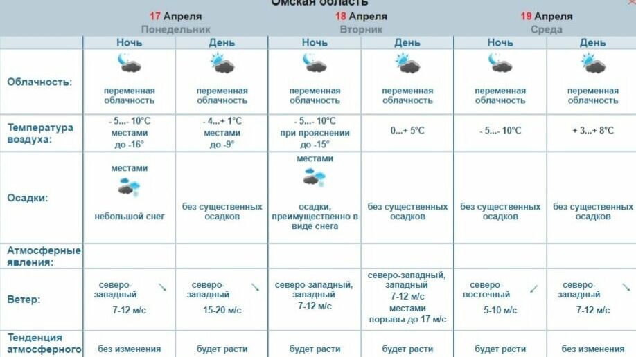 прогноз погоды Фото: Обь-Иртышское УГМСНапомним, 14 апреля омичи рассказывали о снеге в некоторых районах региона. Такие осадки и минусовая температура не характеры для середины апреля.