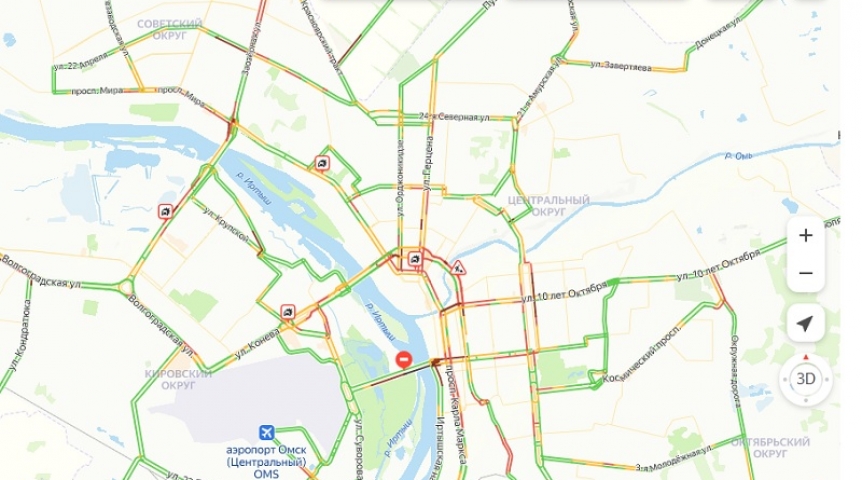Пробки в Омске 31 мая 2024 года / скриншот с карты сервиса «Яндекс.Пробки»