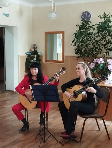 Перед гостями выступила Усольцева Ирина Викторовна со своей воспитанницей Екатериной, а Чирков Владимир Захарович прочел для женщин стихи собственного сочинения. Отрадно, что артисты проживают на территории нашего микрорайона. Мы рады новому знакомству, уверены, что встречи под звучание гитары будут продолжены.