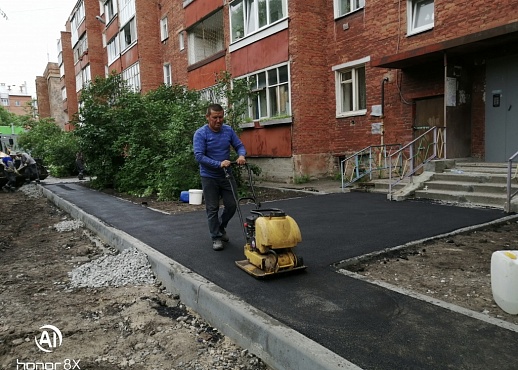 На территории ТОС "Мирный" продолжаются работы по реализации муниципального гранта по проекту "Сквер "Уголок детства" - ремонт асфальтового покрытия придомовых территорий по адресу ул.