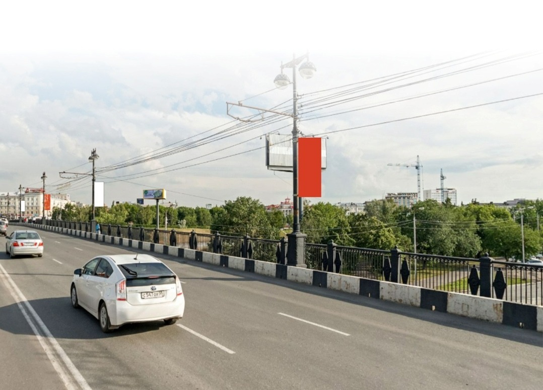 Баннеры на 16-ти опорах освещения (Мост «Комсомольский») Фото: Эскиз городской администрацииКак следует из проекта контракта, баннеры появятся на мостах Комсомольский, имени 60-летия Победы (метромост), на улицах Гагарина, Иртышская набережноя, 60 лет Победы, Транссибирская, Масленникова и Конева.