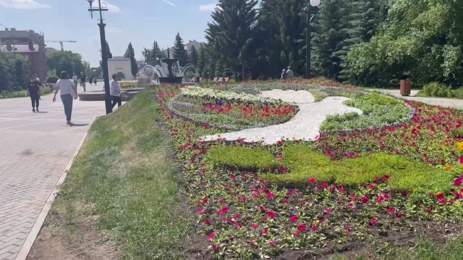 Первомайский сквер на улице Тарской теперь украшен пуще прежнего. На территории можно увидеть масштабную цветочную композицию «Голубь Мира». На одну из самых больших клумб города понадобилось порядка 14 тыс цветов.