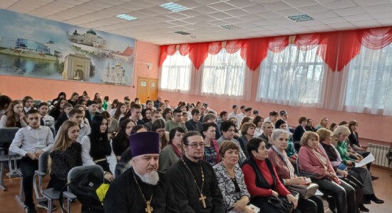 Протоиерей Димитрий Олихов рассказал о важности проведения данного мероприятия, о деле духовно-нравственного и патриотического воспитания детей и молодежи. Батюшка от лица митрополита Омского и Таврического Владимира вручил благодарственные письма сотрудникам школы.
