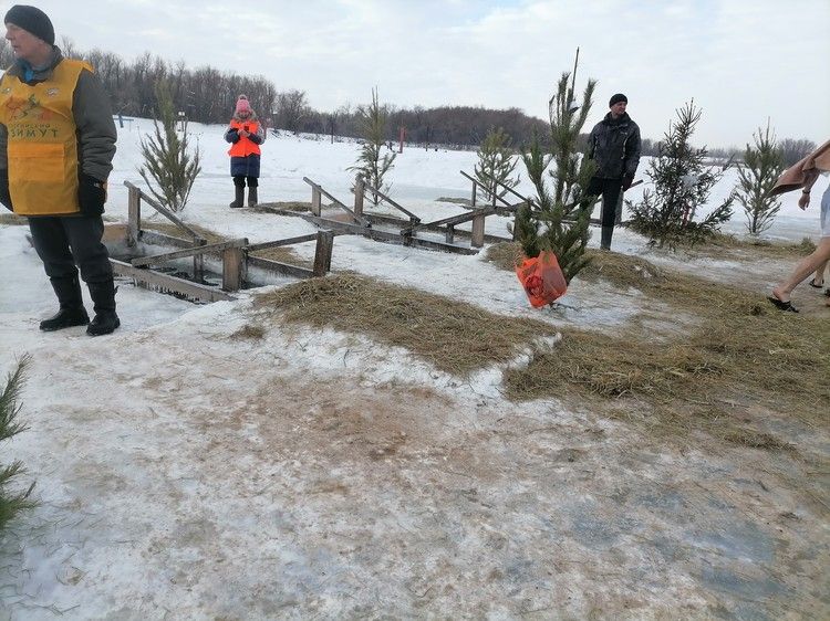 К слову, на запрещенном к купанию Зеленом острове сегодня было многолюдно. По оценкам местных дежурных, в первой половине дня их проруби посетили более тысячи человек. Здесь было организовано всё: теплые палатки для согрева и смены одежды, сотрудники МЧС, полиции и даже бригада скорой помощи. Купели оборудованы специальными деревянными поручнями, а подход к ним застелен соломой. Сам лёд периодически посыпался песком для безопасности верующих.