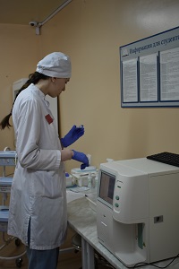 Вторым этапом конкурса стало задание «Выполнение клинического анализа крови на гематологическом анализаторе Avis GA-60» по ПМ.02 Проведение лабораторных гематологических исследований. 10 участников по очереди в течение 10 мин. демонстрировали умения выполнять клинический анализ крови на гематологическом анализаторе Avis GA-60, регистрировать результаты исследования в бланке анализа, проводить дезинфицирующие мероприятия на рабочем месте.