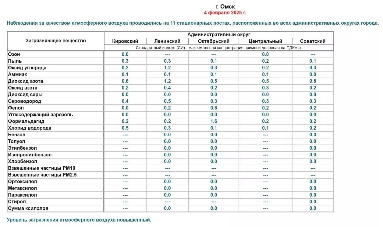 Ранее в двух округах Омска, Советском и Кировском, также зафиксировали превышение ПДК вредных веществ.