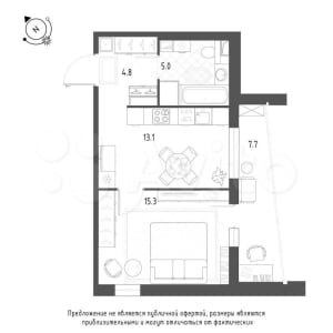- Жилая площадь: 15.3 м²